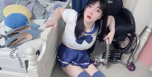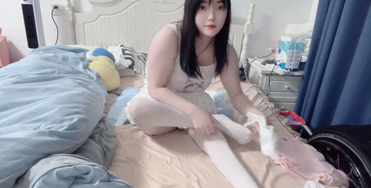 Ava: Paraplegic Girl - Black Dress and Stockings on Bed
