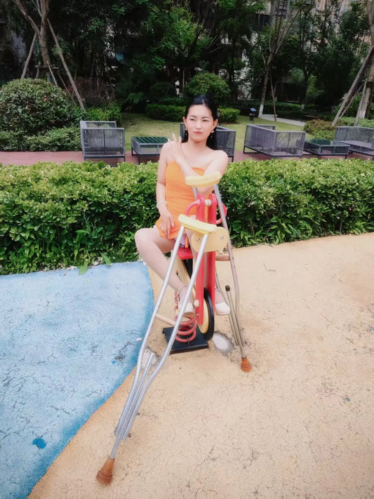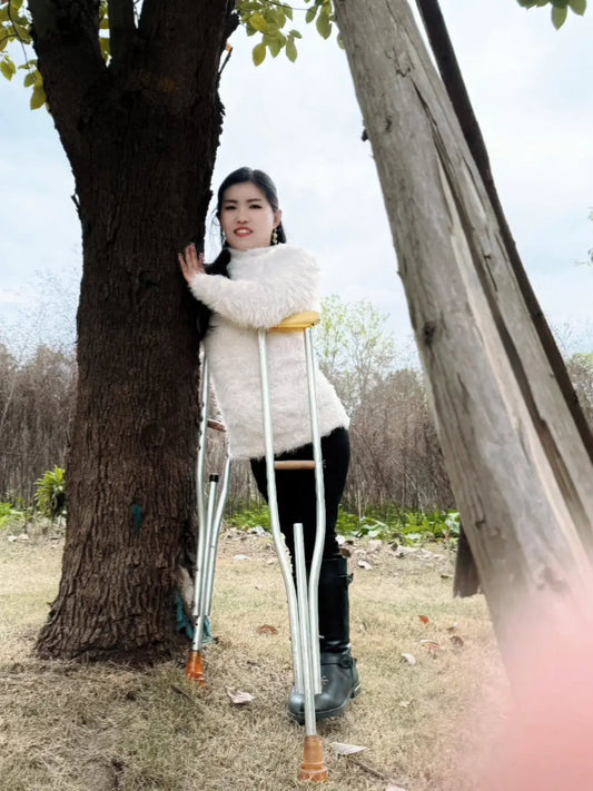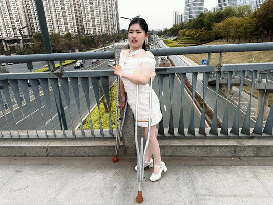 Maria: Polio Girl - Walking with crutches in a white chiffon dress