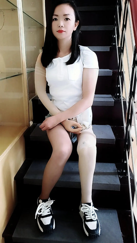 Mila: Ooe Amputee Girl - Walking down the stairs in high heels
