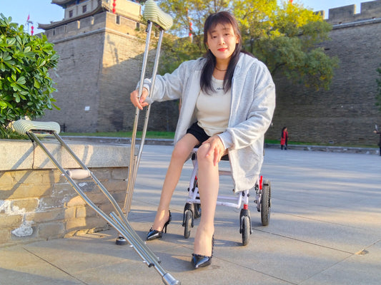 Rose the Polio Girl strolls through the park in high heels and on crutches.