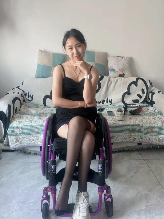 Zoe: Paraplegic Girl - Rhinestone Sandals and Black Stockings