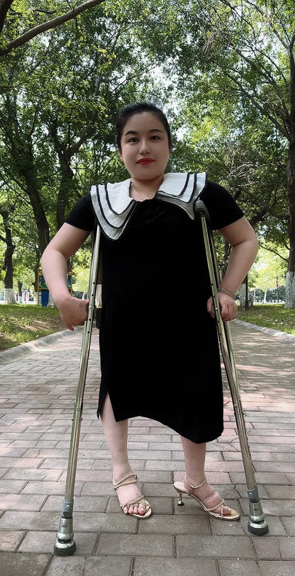 She walked with crutches, and to go to far places, she would drive an electric tricycle.