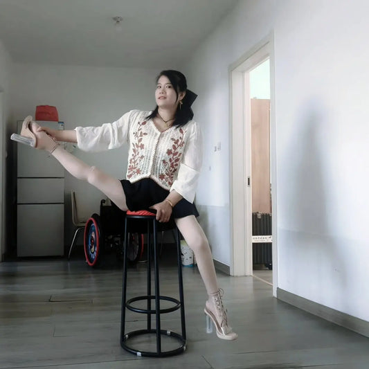 Zoe: Paraplegic Girl - Blindfolded Stocking Challenge